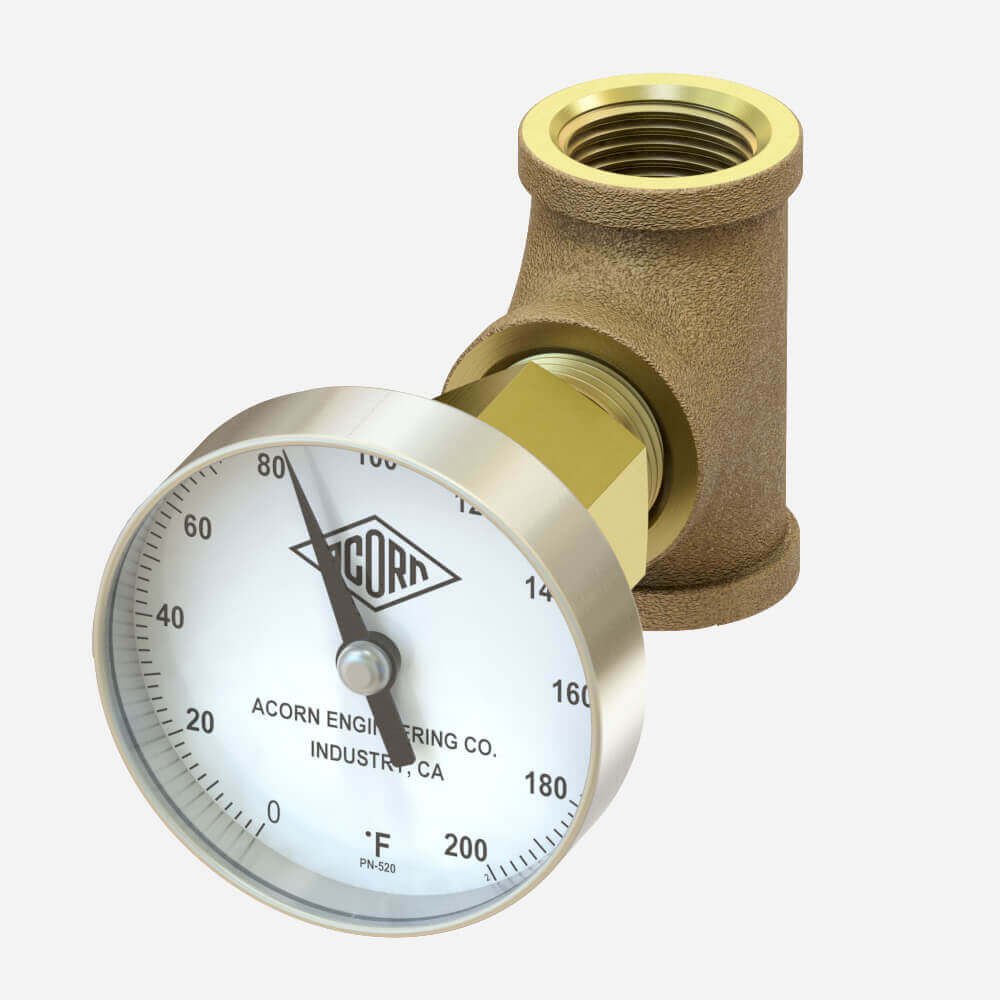 This provides a optional gauge monitoring the outlet temperature of a mixing valve. It is available on ConTrols® mixing valve supply fixtures.