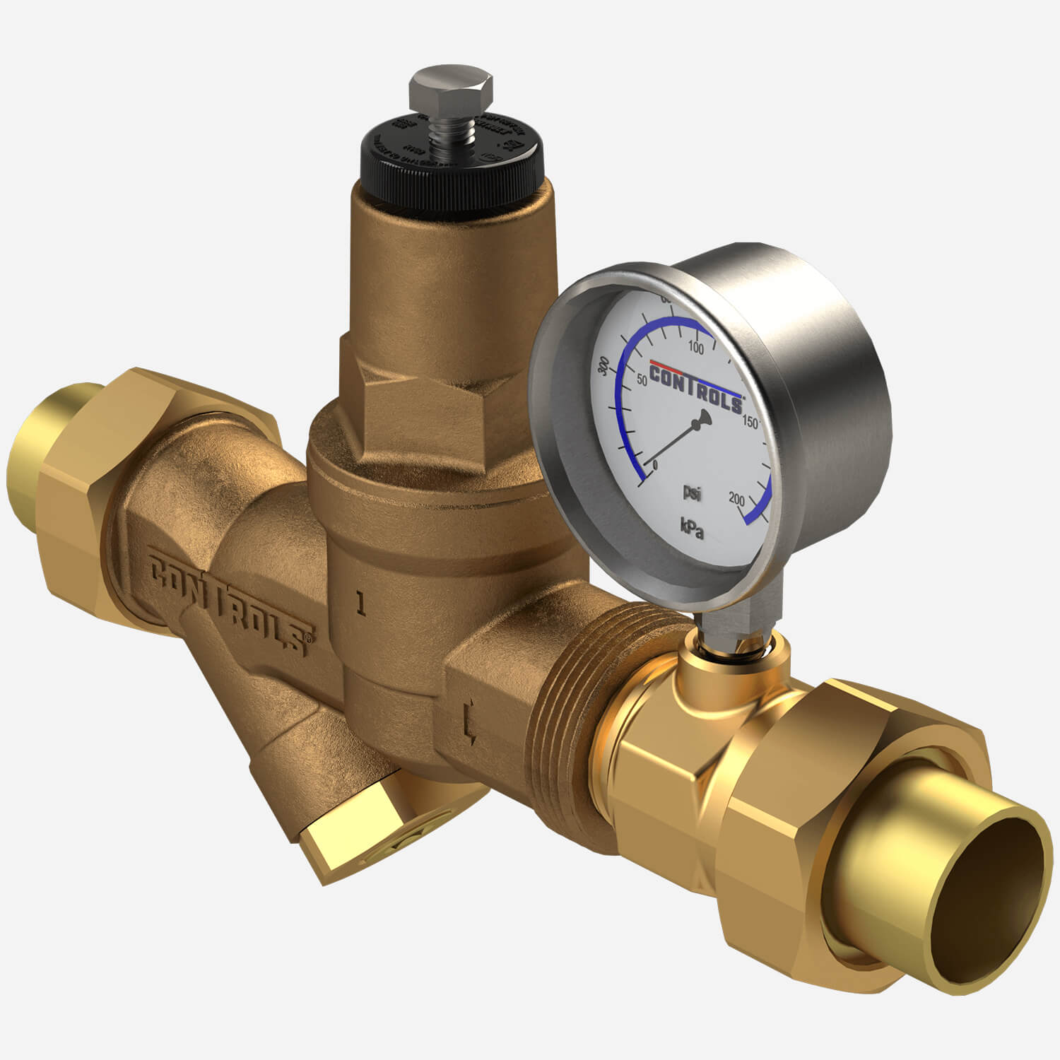 YRV03B0-3AAG Brass Bonnet Standard Pressure Spring 1" Valve Size Sweat Inlet Adapter Sweat Outlet Adapter Adapter with 0-200 psi Gauge
