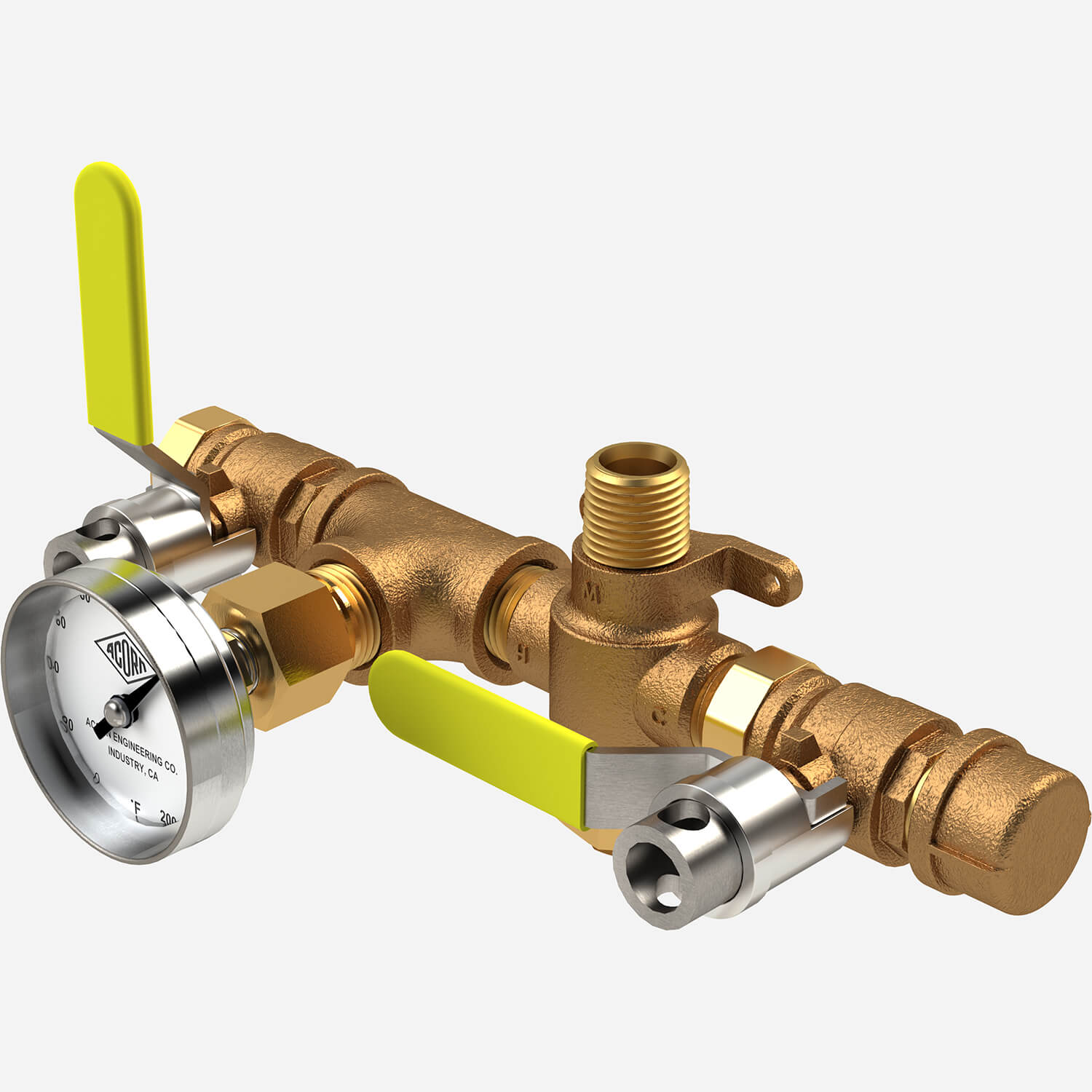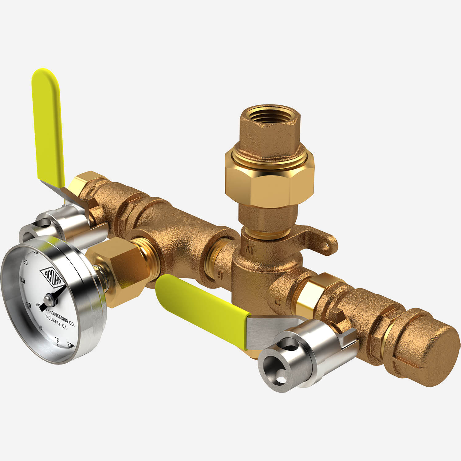Valve, Two Lockable Ball Valves, Gauge with Tee, Union, Test Port Cap
