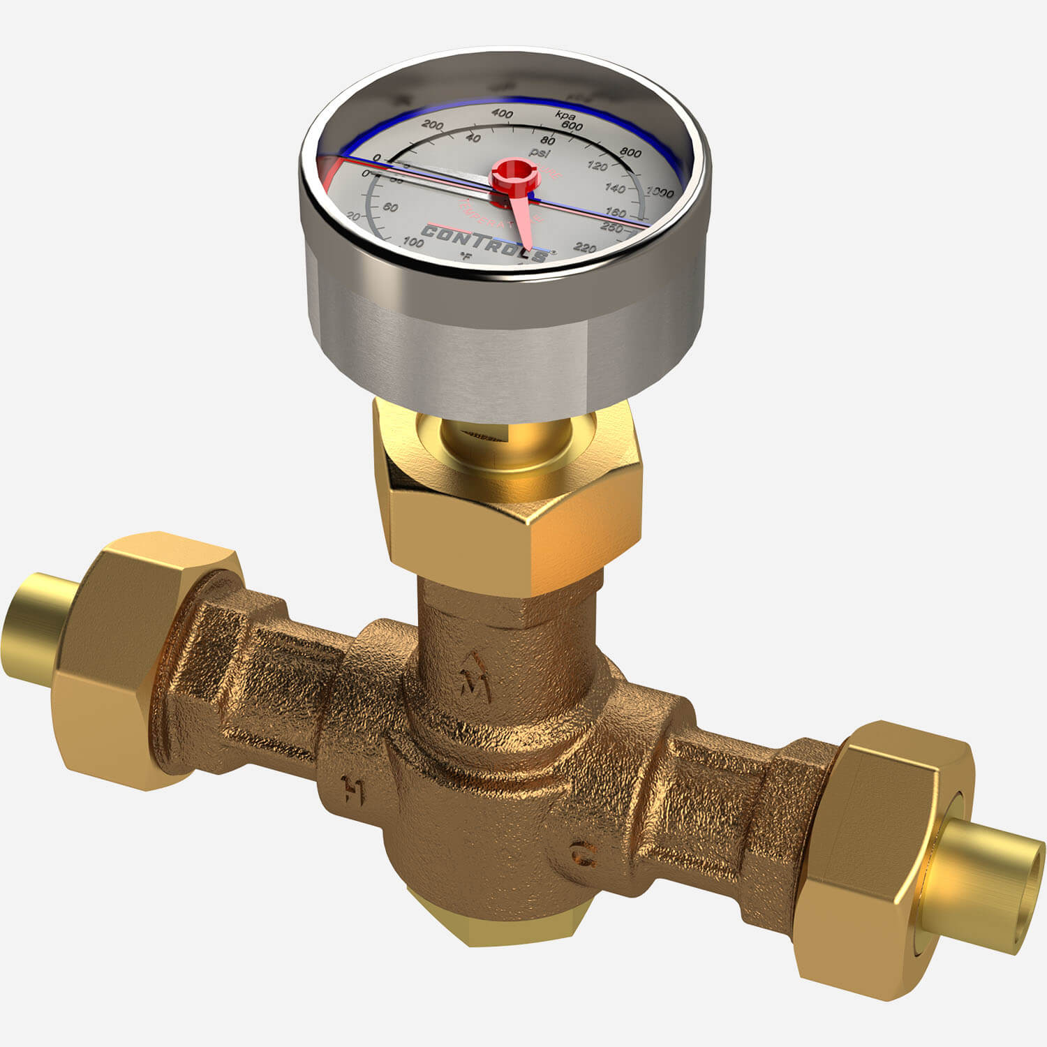 - An optional Temperature/Pressure Gauge can be installed in the second outlet